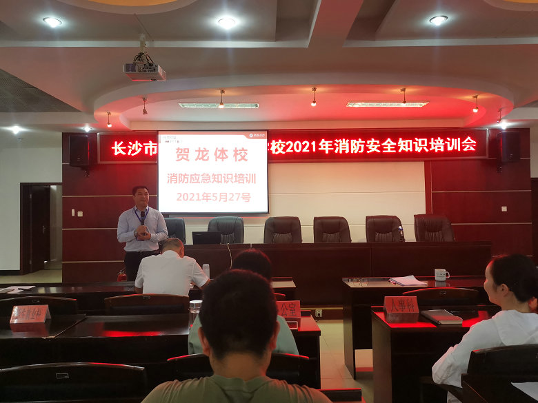 为切实加强消防安全管理,普及消防安全知识,进一步提升广大教职工的消防安全意识与防护能力,5月27日,特邀请湘安消防吴悔教官来我校开展“消防应急知识培训”,培训会由副校长刘晚玲主持。