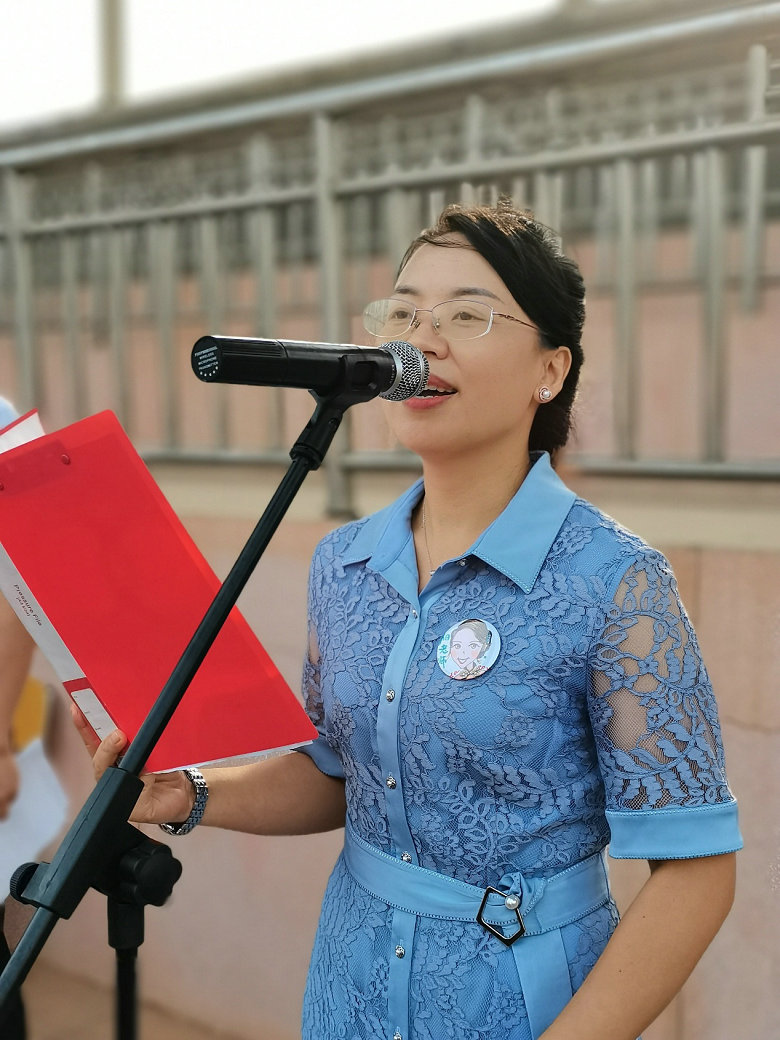 大会第一项:升国旗,奏国歌。踏歌追梦共前行,由校团委干部和团员代表组成的国旗班旗手们迈着整齐地步伐,铿锵有力地走向升旗台,伴随着雄壮的国歌声,五星红旗冉冉升起,开学典礼正式拉开帷幕。