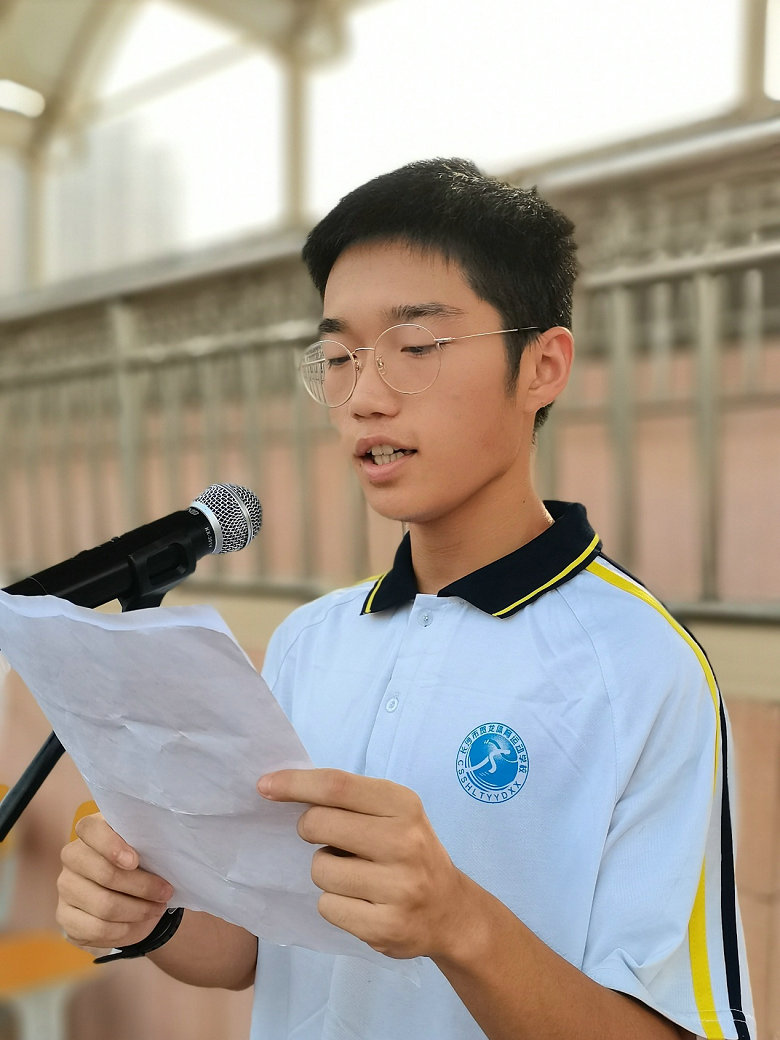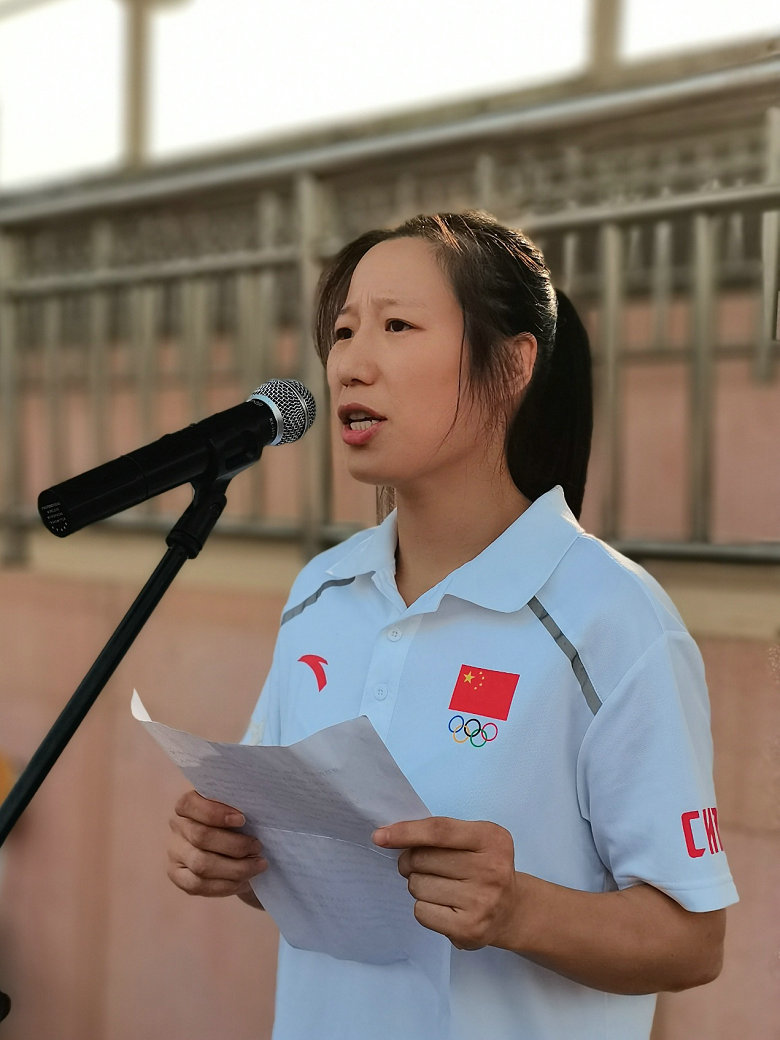 教师代表、教练员代表和学生代表分别发言。教师代表阳颜梅希望同学们拿出 “天生我才必有用”的信心、“吹尽黄沙始到金”的毅力、“直挂云帆济沧海”的勇气,去迎接人生风雨的洗礼。教练员代表黄翠萍用亲身经历激励同学们弘扬奥运精神,谨记厚德、强体、笃学、精技的校训。学生代表陈钊俊皓表达了对学校对老师的感恩,并表态一定好学乐进。