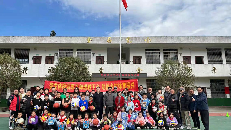 金石完全小学位于金刚镇省级贫困石霜村,全校共有小学生138人,约20%为留守儿童,30%为贫困儿童。全校教职工共12名,音乐、体育、美术三门课程均无专任教师。训练支部全体党员助推乡村体育振兴,在支教、选材、培训等方面予以大帮扶力度,本次为金石完小的孩子们带来一堂精彩的篮球课。课堂上篮球丁教练带孩子们运球、抛球、折返跑接力,与孩子们互动进行抢球练习,孩子们在教练的带领下掌握了篮球直线运球的技术,体验了篮球运动的乐趣,折返接力比赛将整堂课的气氛推向了高潮。