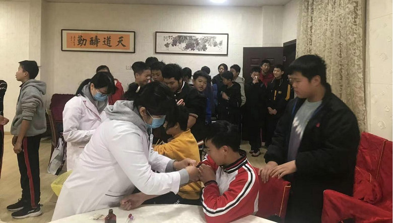 医务人员为75名运动员进行采空腹血液采样,测试血生化指标,包括:血睾酮、肌酸激酶、血红蛋白等生化指标。我校科研室工作人员联合湖南省体育科学研究所的专家为运动员进行骨龄、反应时、纵跳及身体形态相关指标的测试。运动员们在柔道队的6名志愿者的带领下和现场工作人员的指挥下井然有序的参与测试。