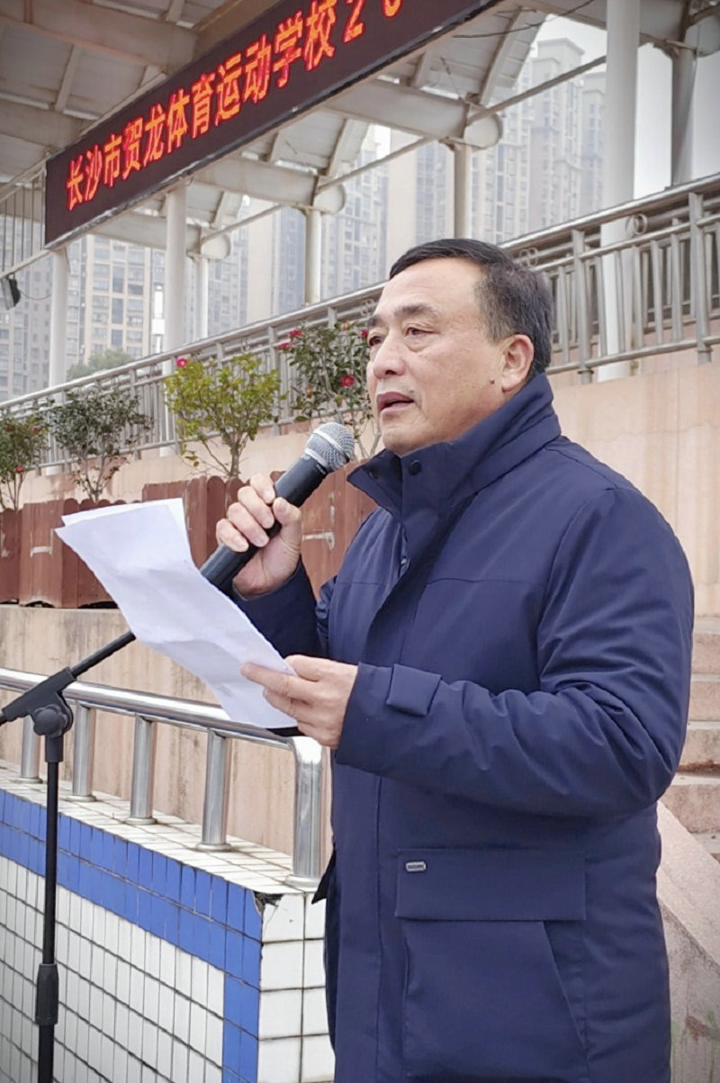 典礼上杜华学校长发表了重要讲话,肯定了贺校人在省锦标赛上、省市技能竞赛、学科竞赛上取得的成绩,对全体师生提出加强品德修养、践行一训三风、传承奥运精神等三点要求,并勉励同学们以一流的精神面貌、一流的竞技状态在湖南省第十四届运动会上取得一流的成绩。