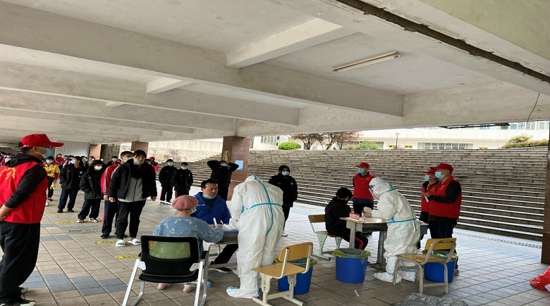 2022年3月29日早上接到湘龙街道疫情防控办通知,我校全体师生8:30在学校架空层开展全员核酸检测,在时间紧、任务重的情况下,训练支部组织崔广稳、曹瑞林、罗能武、陈佳作为党员志愿者在学校疫情防控办的统一指挥下,为此次核酸检测做好各项服务保障工作,接到通知后,大家积极投入到服务保障工作中去,按照核酸检测的要求进行分工,做好物质搬运、维护秩序、协助检测等工作,切实保证核酸检测工作安全、顺利进行,训练支部组织全体党员围绕学校疫情防控整体部署参与到各项管理服务工作之中。(撰稿:崔广稳)