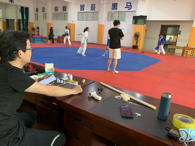 5月6日,体育科研人员于跆拳道队开展跟队监测工作