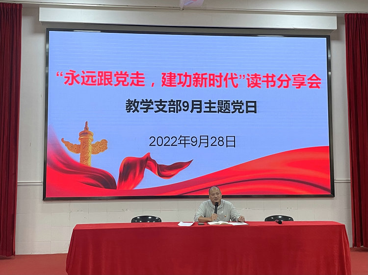 为迎接党的二十大胜利召开,弘扬保持和发扬党的先进性,激励党员教师在新时代强化新担当、展现新气象、实现新作为,9月28日下午,教学党支部以读书分享会的形式组织开展了“永远跟党走,建功新时代”主题党日活动。