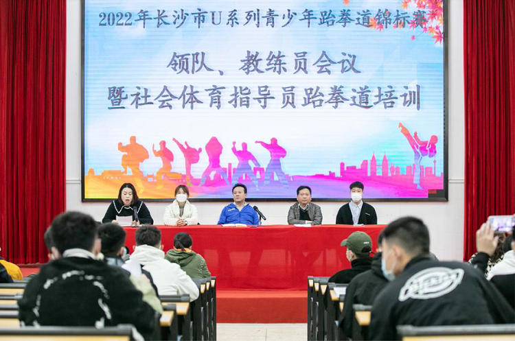 11月18日由长沙市体育局、长沙市教育局主办,长沙市贺龙体育运动学校承办,湖南蓉梦体育俱乐部协办的2022年“奔跑吧·少年”长沙市青少年U系列跆拳道锦标赛领队、教练员会议暨社会指导员跆拳道培训在长沙市贺龙体育运动学校顺利召开。