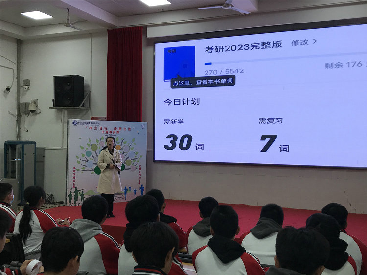 为进一步落实对生涯规划课程的探索,使学生进一步找寻人生目标,做好人生规划,11月29日上午第二节课,我校组织在阶梯教室召开了以“树立目标,唤醒生涯”为题的生涯规划主题班会。本次班会由阳颜梅名班主任工作室主持人阳颜梅老师执教,各班学生代表、家长代表、全体班主任老师参加主题班会,校领导及学生科、教务科负责人出席并聆听班会课。