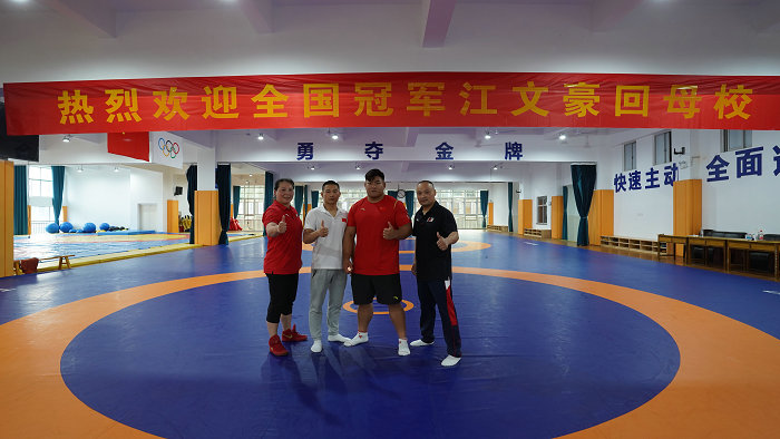 江文豪曾在贺龙体校训练三年多,这里是他的启蒙之地。江文豪回忆,第一次来到贺龙体校,接触的就是摔跤项目,感觉耳目一新。“贺龙体校是一个梦想启蒙的地方,我在这里有很多师兄师弟。教练员一直以来对我们的关心和教导,让我收获很多。”