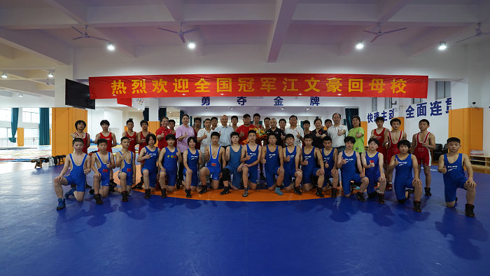 5月25日下午,全国冠军江文豪回到母校——长沙市贺龙体育运动学校(以下简称贺龙体校),探望学校领导,看望启蒙教练,感谢他们的辛勤培育。对于正在训练中的学弟学妹,江文豪分享了自己成长之路上的经验,得到了热烈欢迎!