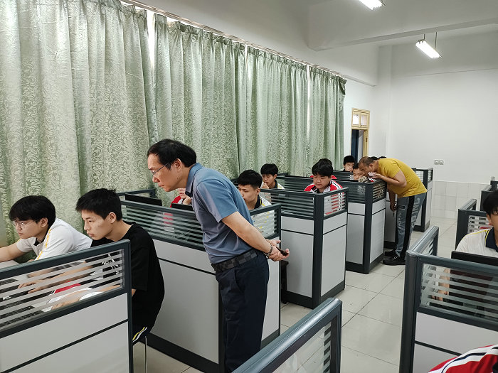 考前一个月,学校安排班主任和任课教师利用午休、晚自习时间对学生进行上机训练。