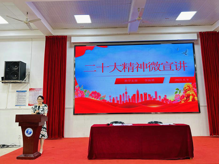 6月9日,教学支部围绕学习党的二十大精神开展主题党日活动,通过李骁、李海赟、戴慧敏三位党员同志的微宣讲,带动支部党员多角度学习领悟二十大精神要义。
