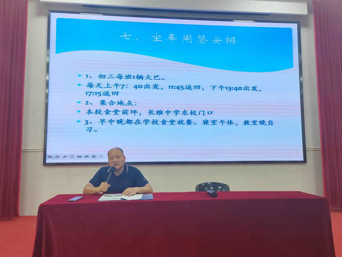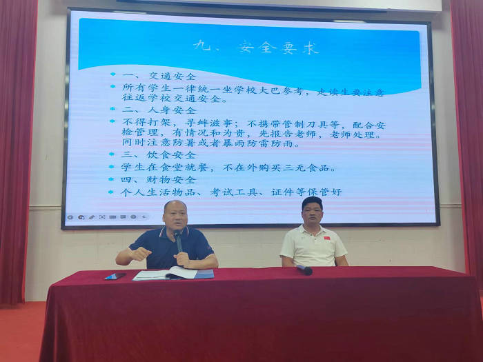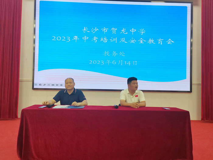 根据《长沙市贺龙体校初中毕业考试组考方案》,6月14日中午,教务处组织全体初三、初二学生在阶梯教室召开2023年中考培训及安全教育会,会议由教务处余江副主任主持。