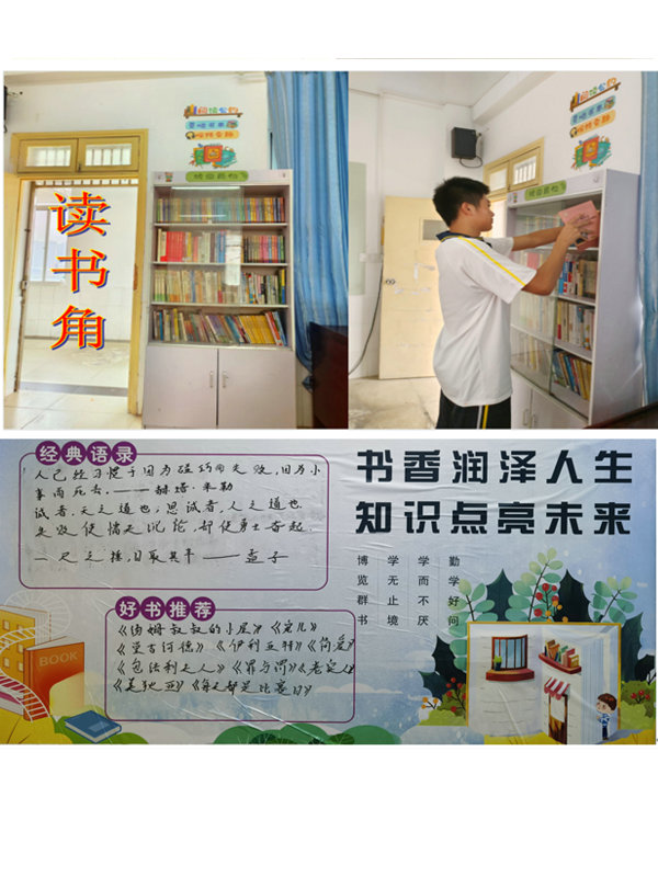 书香班级环境的布置至关重要,充分利用好每一个空间,每一寸墙壁都需要班主任老师费尽心思去智慧创建。G2205班教室里,雪白的墙壁上精心设计的“我最闪亮”光荣榜、“梦想会发光”和“无上光荣”班级荣誉展示墙,是班主任郭玲老师开创出的思想引领阵地,旨在帮助班级成员强化自信,凝聚对班级的归属与认同,塑造更好的自己。G2207班结合体校特色,将体育特色元素融进教室的环境布置中,形成文体并进的书香环境。各班“丰富”的藏书、精心的布置为同学们潜心阅读营造了浓厚的氛围,同学们在良好的书香浸润中获得知识的力量。