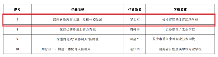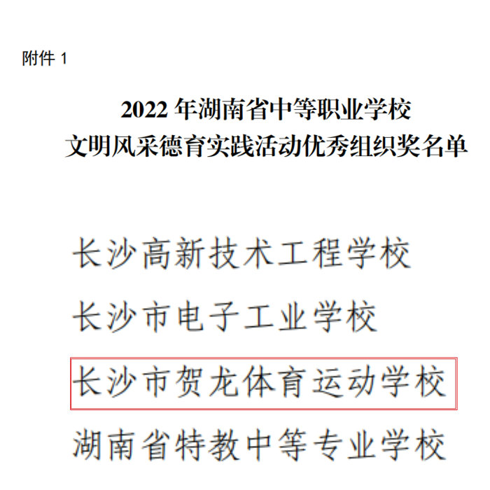 荣誉背后承载的是贺龙体校全体教职工对德育教育不懈的努力和追求。未来,学校将继续结合省、市文明风采系列德育实践活动,以多种形式的德育活动推动学校素质教育的发展,为学校师生提供更广阔的展示舞台,促进校园精神文明的纵深发展。(张玲)