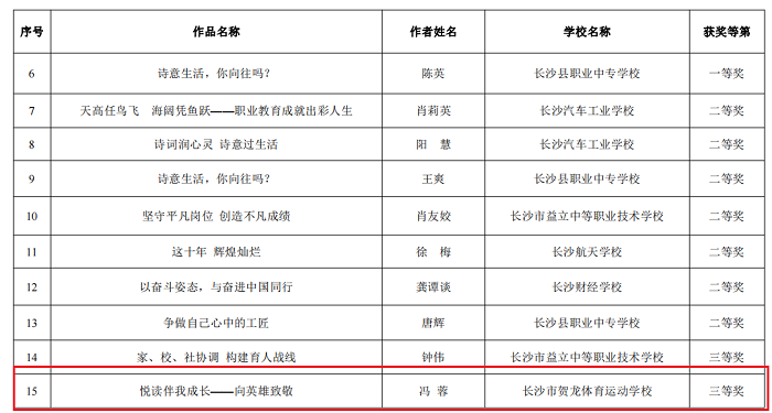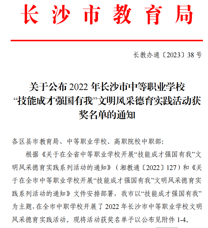 近日,在湖南省教育厅公布的2022年 “技能成才 强国有我”文明风采德育实践系列活动获奖结果中,我校喜获多个奖项,为学校荣誉再添硕果。