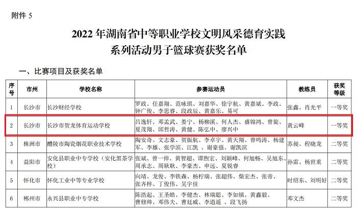 湖南省“文明风采德育实践系列活动男子篮球赛”一等奖