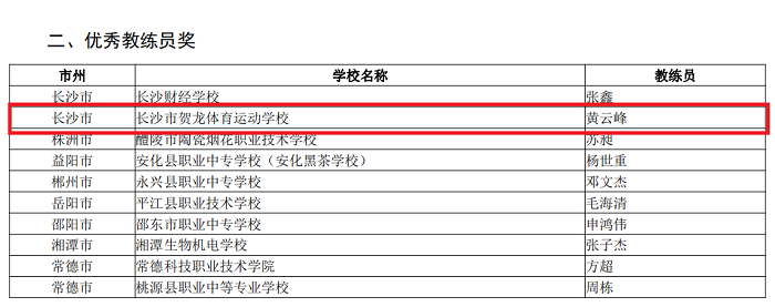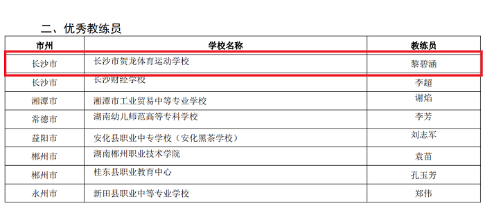 篮球队黄云峰教练、乒乓球队黎碧涵教练均被评为:
