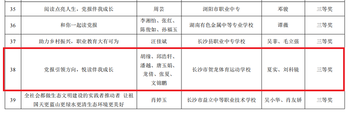 长沙市 “赛育合一德育创新”典型案例 三等奖