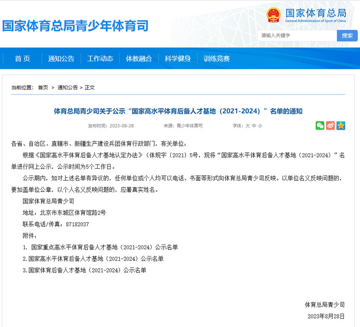 8月28日,国家体育总局官网发布《体育总局青少司关于公示“国家高水平体育后备人才基地(2021—2024)”名单的通知》,我校获评“国家体育后备人才基地”。