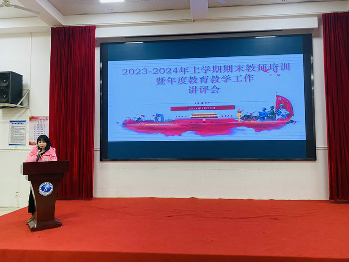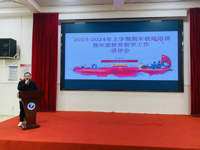 回望盘点再聚力,学习培训启新程。2024年1月25日,贺龙体校召开2023-2024上学期期末教师培训暨年度教育教学工作讲评会。本次会议由吴丽萍老师主持,全体教师参会,卢海泉副校长出席会议。