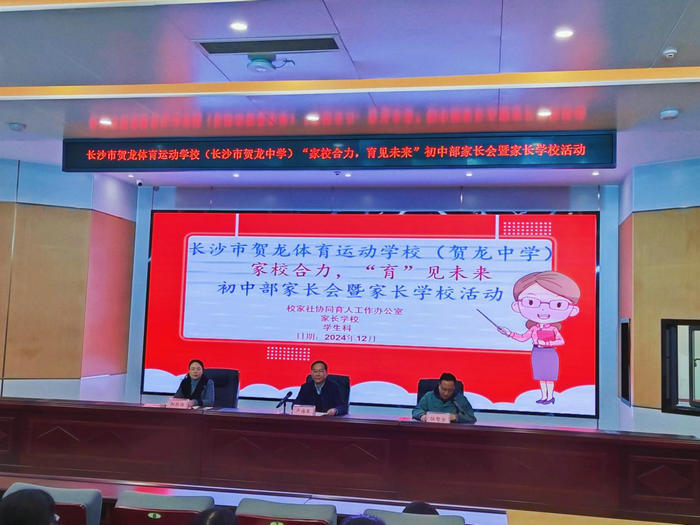 为了加强家校沟通,携手助力孩子们身心健康成长。12月6日,长沙市贺龙体育运动学校召开了以“家校合力,‘育’见未来”为主题的初中部线下(中专部线上)家长会暨家长学校活动。