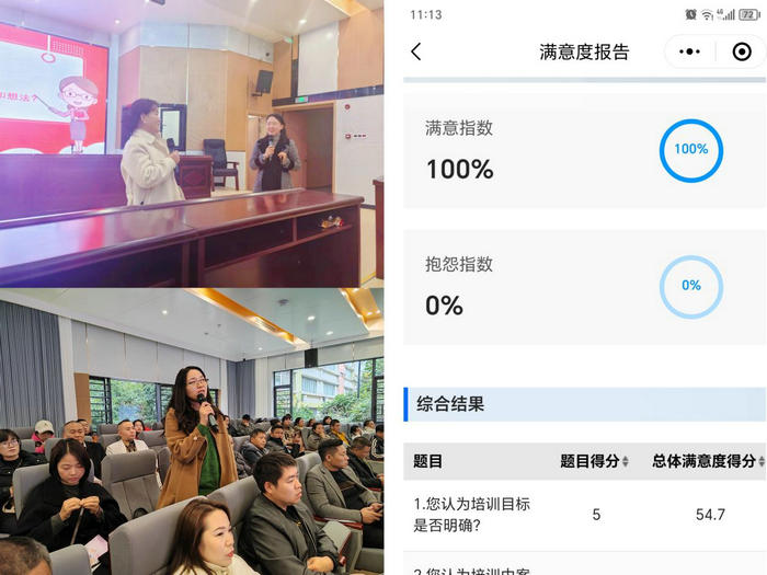 家长会现场,家长们积极参与,共同讨论,气氛热烈。课后,通过家长们填写的课程满意度调查得知,家长表示自己获益良多,收获满满,期待以后多举行这样的讲座。