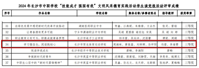 近日,在湖南省教育厅、长沙市教育局陆续公布的2024年“技能成才 强国有我”文明风采德育实践系列活动获奖结果中,我校喜获多个奖项,为学校荣誉再添硕果。