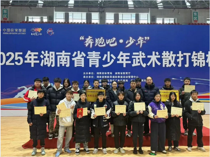 2025年2月23日至25日,“奔跑吧·少年”2025年湖南省青少年武术散打锦标赛在娄底市新化县体育运动中心举行。本次赛事由湖南省体育局、湖南省教育厅联合主办,吸引了全省14个市州的数百名青少年武术健儿同台竞技,一展风采。
