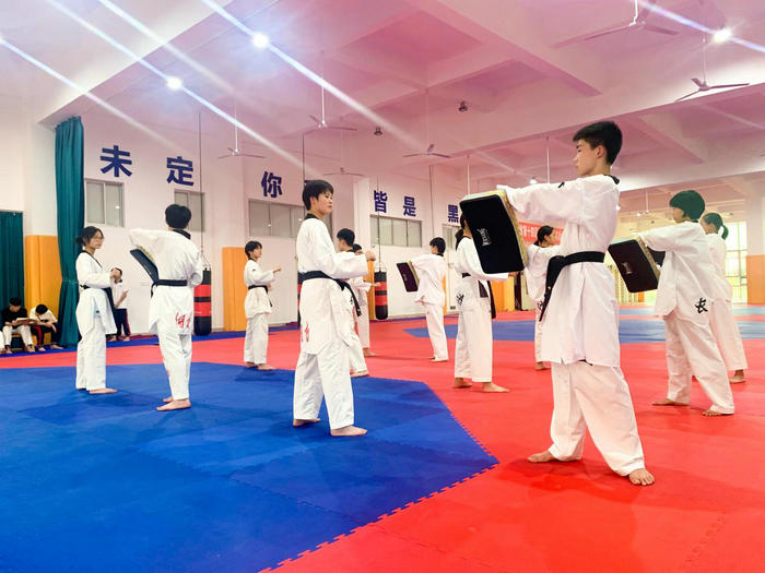 中三年级G2205班的34名体育单招考生,每日在训练馆与文化课堂间无缝切换。上午攻克文化课,下午专项训练,晚间复盘错题。学校为单招生定制“一人一策”,文化教师与教练联合制定学习计划,确保训练与复习两不误。