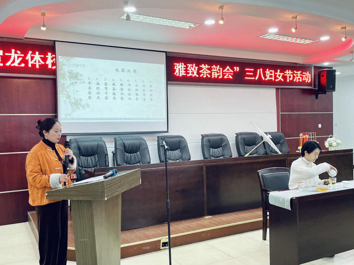 三月春光烂漫,茶香氤氲醉人。为庆祝第115个“三八”国际妇女节,3月6日,长沙市贺龙体育运动学校开展“茗香庆三八 雅致茶韵会”为主题的茶文化三八妇女节活动,妇委会主任王轶主持,党委书记罗文军、工会主席朱启文、学校70余名女教职工齐聚一堂,共赴一场春日里的茶香之约。
