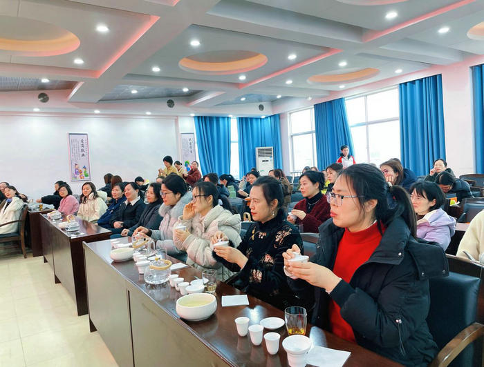 活动结束后,活动现场的全体人员合影留念,记录下快乐的时光。老师们纷纷表示,今天的活动太有意义了,不仅品尝到了美味的茶点,还学习到了很多茶文化知识,感受到了中国传统文化的博大精深。学校希望通过此次活动,让女教职工更多的了解茶文化,感受茶文化的魅力,同时也让大家放松身心、交流学习、感受幸福。茗香庆三八,雅致茶韵会。在这个属于女性的节日里,学校女教职工们在茶香中放松身心,在茶韵中品味生活,共同度过了一个难忘午后时光。相信这场春日里的茶香之约,将会成为她们心中美好的回忆。(撰稿:唐洁)
