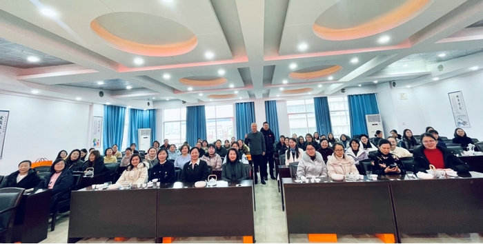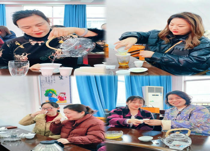 接下来,茶艺师展示了精湛的茶艺表演,一招一式,尽显优雅;茶文化讲师为大家讲解了茶叶的种类、冲泡技巧以及茶文化的历史渊源,让大家对茶文化有了更深入的了解。在茶艺体验环节,全体女教职工跟练茶艺,在茶艺师的指导下学习茶艺,甚至有女教师换上旗袍,亲手调制冲泡茗茶,大家积极参与,感受传统文化的魅力,现场气氛热烈欢快,展现出对茶文化的浓厚兴趣。