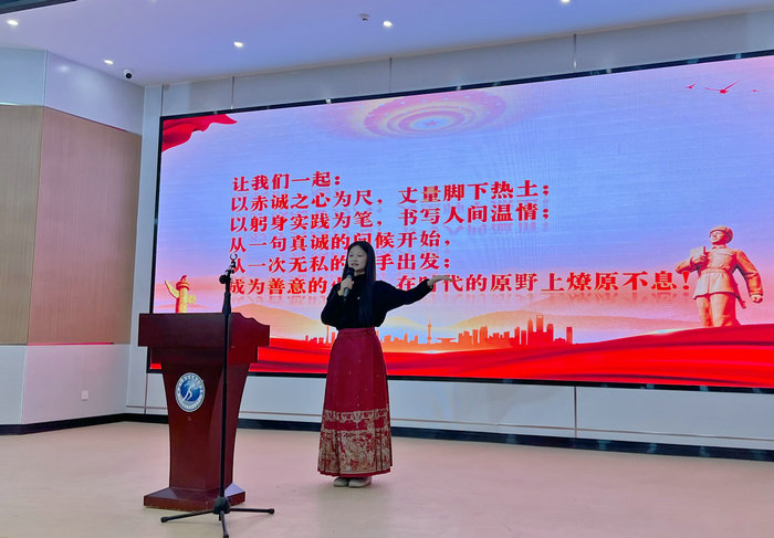 G2301班黄思琪同学从雷锋的日记切入,深情阐述平凡之举中闪耀的人性光辉,号召同学们永葆学习雷锋的赤诚之心,在新时代的原野上燎原不息。