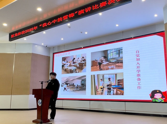 比赛现场,十名从初赛中脱颖而出的选手个个神采奕奕,满怀信心,充分展现了贺校学子的风采与实力。他们以激昂的文字、饱满的热情和富有感染力的声音,以及飞扬的神采,生动诠释了贺校学子对雷锋精神的传承与弘扬。