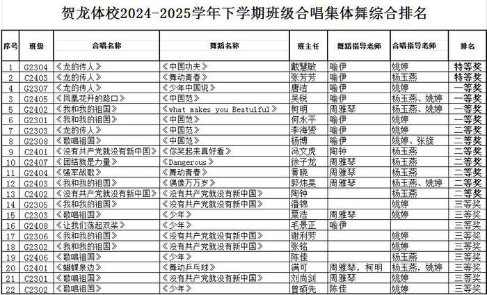 G2405班以《凤凰花开的路口》惊艳全场,纯净的声线与细腻的和声设计令评委动容,班主任吴锐老师感慨:“学生们自发利用午休排练,这份坚持比奖项更珍贵。” G2307班演绎的《龙的传人》以饱满音色与真挚情感打动评委,姚婷老师评价:“同学们透过歌声表达出了身为龙的传人的自豪之情。” G2404班《强军战歌》则以铿锵旋律与军姿队列彰显阳刚之美,杨玉燕老师称赞:“他们用歌声诠释了新时代青年的担当。”