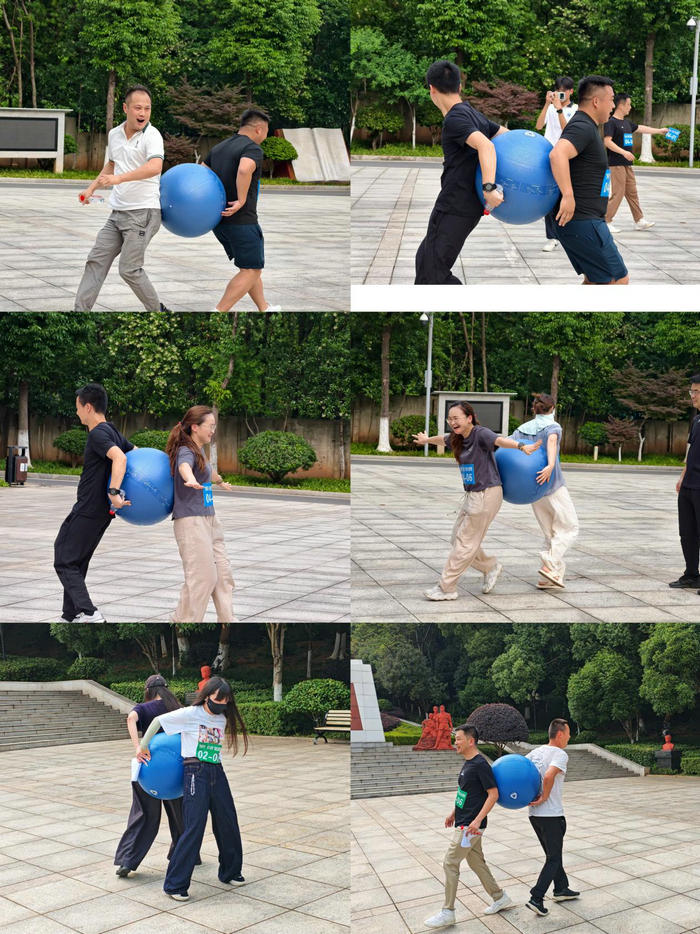 3公里的赛程中,各队争分夺秒展开智慧与体力的双重比拼。合力运球环节,队员们用A4纸接力运送乒乓球,稍有不慎便需重头再来,最终第三队以零失误创下最快通关纪录;背靠背夹球接力赛上,队员们默契配合,在欢呼声中稳步前行;团队跳绳关卡,10次不间断跳跃考验节奏掌控,现场加油声此起彼伏。