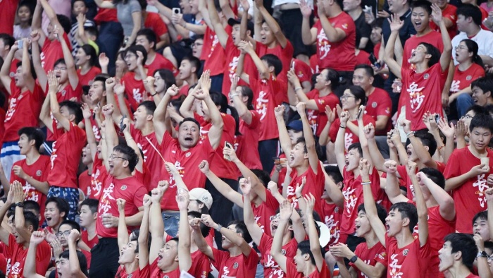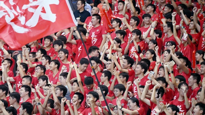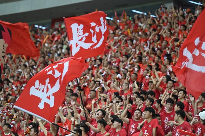 “长沙傲腿踢四方!”“长沙,必胜!”声浪一次又一次次席卷全场,学子们炽热的眼神与挥舞的手臂,成为赛场里灼热的火炬。