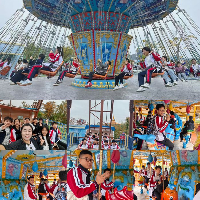 下午的欢乐时光将整个研学活动推向了高潮。园区内的“激流勇进”带来乘风破浪的快意;“飓风飞椅” 让同学们体验着盘旋升空的刺激;惊险刺激的“时钟穿越” 与 “激情时速过山车” 更是挑战着同学们的胆量与勇气。大家在一次次速度与高度的挑战中放声欢呼,不仅尽情释放了活力,更在相互鼓励中锻炼了意志,加深了友谊,将课堂所学的探索精神延伸至快乐的实践中。