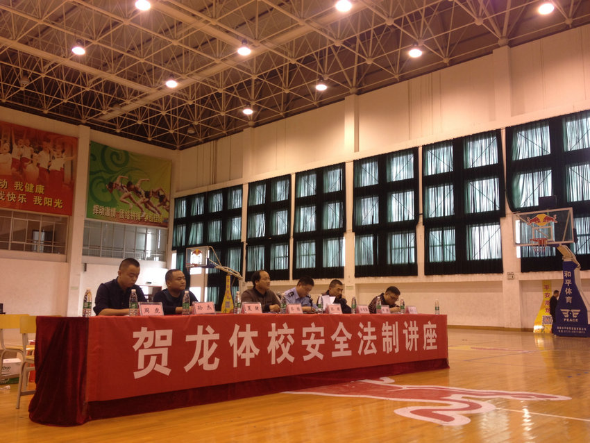 2015年10月27日下午,学生科组织全校师生在篮球馆举行安全法制讲座。湘龙派出所副所长张甫应邀主讲。湘龙街道司法所、综治办的领导出席。学生科乔栋科长主持讲座。