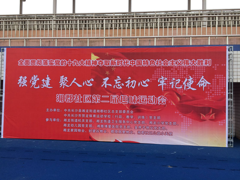 为深入贯彻落实党的十九大精神,增进党员与社区的紧密联系,2017年11月11日,我校全体党员开展党员进社区活动,参加湘郡社区第二届趣味运动会。