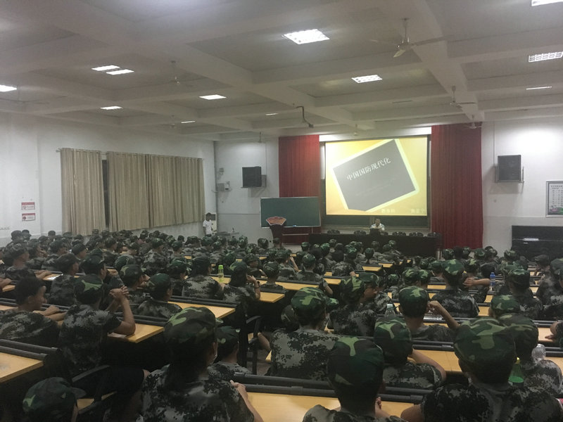为进一步加强我校新生对我国国家安全形势的认识,增强国防意识,激发爱国热情,树立居安思危的忧患意识,我校于8月27日晚8点在阶梯教室举行了以“中国国防现代化建设”为主题的国防知识讲座。此次讲座特邀教务科黄景全主任主讲。