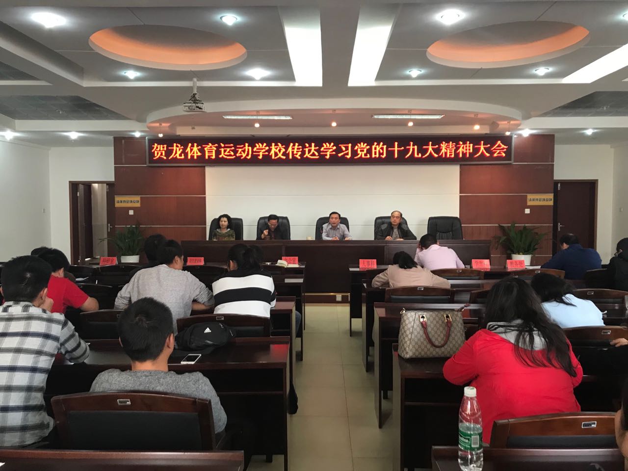 为贯彻落实党的十九大精神, 11月3日,学校召开全体教职工会议传达学习党的十九大精神。