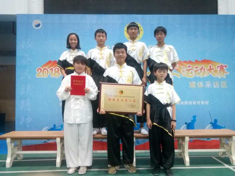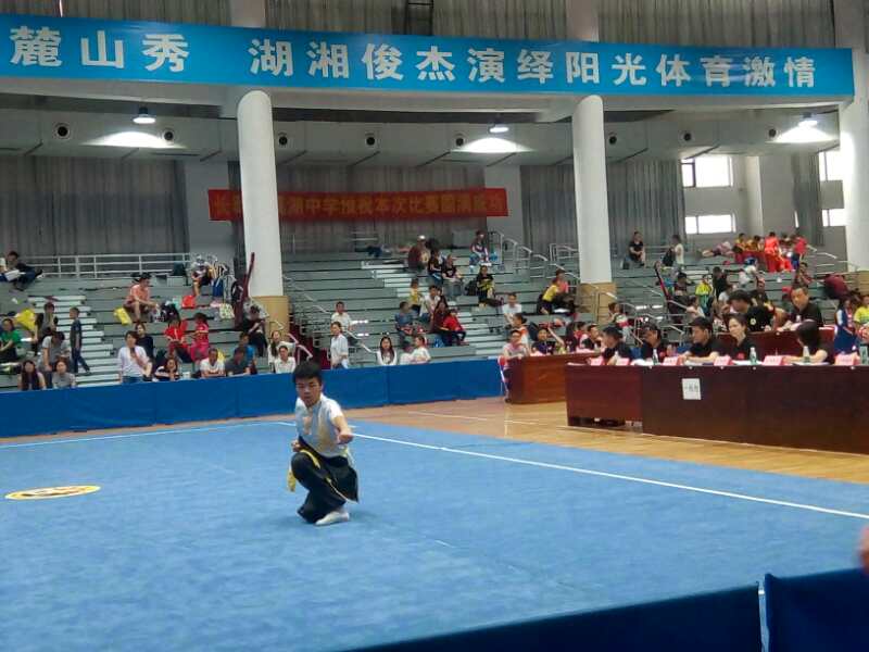 2018年5月26日—27日,由长沙市武术协会主办的长沙市第三届武术运动大赛在长郡梅溪湖中学体育馆隆重举行,我校武术队在教练员陶钟老师的带领下,派出8名运动员参赛,在拳术、刀术等各套路比赛中完美展现出扎实的功底和雄健的风采,共夺得5枚金牌、2枚银牌、2枚铜牌的好成绩。其中刘文治获得男子少年A组24式太极拳,初级长拳第一名,徐笠寒获得男子少年B组24式太极拳、初级长拳、自选刀术第一名。(撰稿:贺畅)