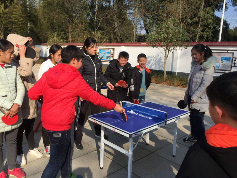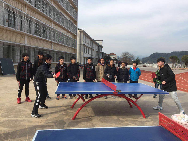 黎碧涵老师为沿溪中学的同学们上乒乓球课