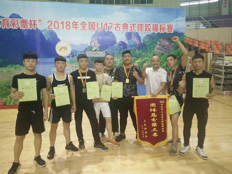 2018年全国U17古典式摔跤锦标赛6月5日至6月8日在江西鹰潭举行,在冷国强教练的带领下,我校派出江文豪、周帅、陶汉武、汤丰4名运动员参加了比赛,运动员敢打敢拼,经过顽强拼搏,江文豪获得110公斤级第一名,汤丰获得了55公斤级第八名,这次比赛既取得了可喜的成绩,也锻炼了队伍。(崔广稳)