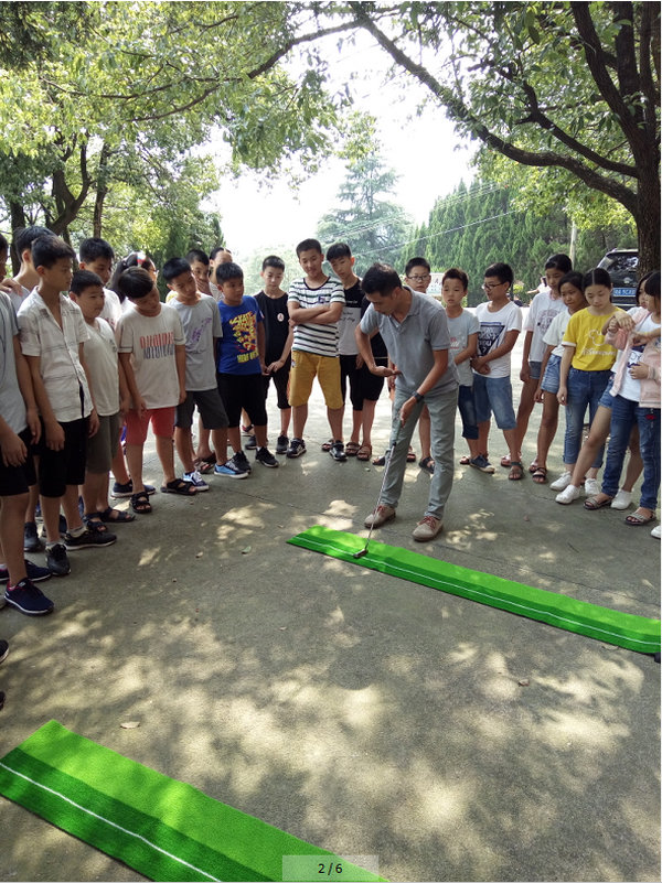 “校长你好,我们体育志愿服务队计划来你们学校送一节高尔夫球课程……”“我们是乡村学校,可能开展不了吧……”为了乡村学校的孩子们有不一样的经历和体验,我校志愿服务队于9月4日先后来到宁乡市横市镇界头小学和回龙铺镇初级中学,为乡村学校的孩子们送去了一堂高尔夫球的体验课。