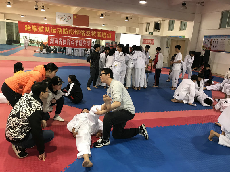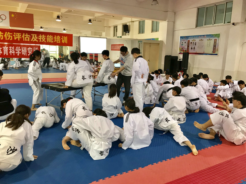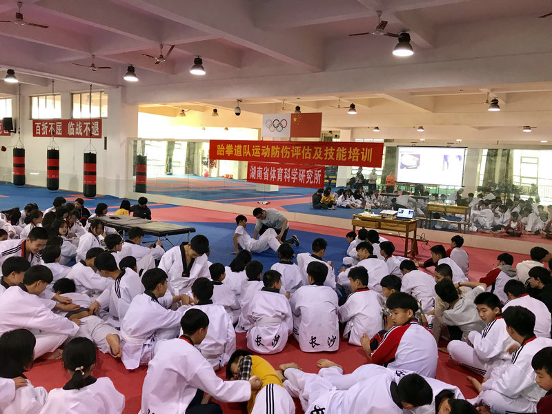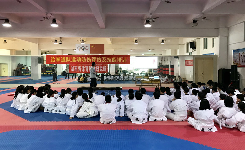为进一步增强我校跆拳道运动员防伤性体能训练的技能。 2019年4月1日,科研室邀请湖南省体育科学研究所专家宁克副所长为全体跆拳道运动员进行《运动防伤评估及技能培训》。