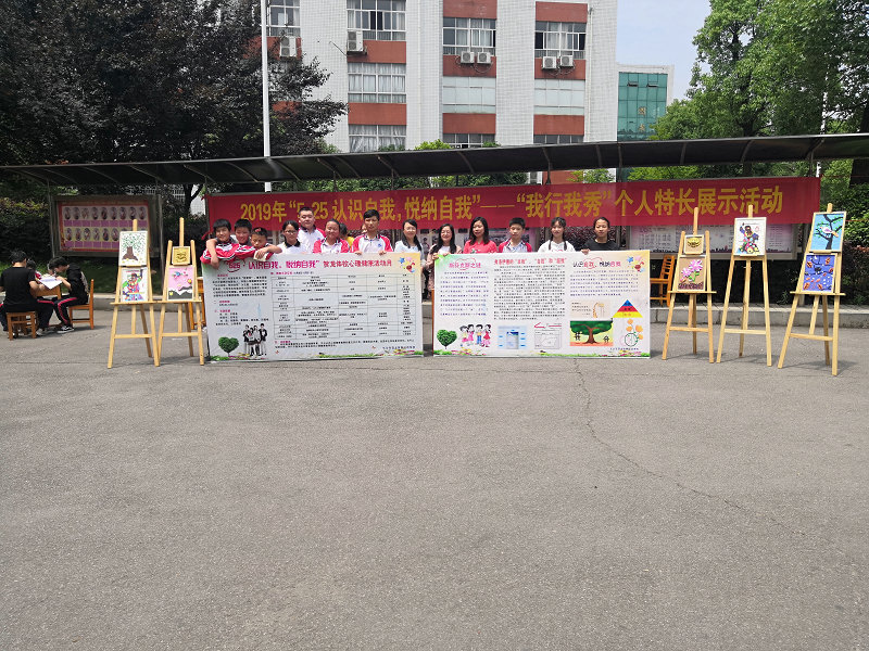 “5·25认识自我,悦纳自我”系列活动之校园心理测试活动、“我型我秀”个人特长展示活动于2019年5月22日在学校教学楼与田径场入口交汇的前坪成功举办。本次活动内容分为学生心理健康测试、个人特长展示活动两个部分,由各班心育委员分工负责具体测试、展示登记、奖品发放等工作。本次活动问卷采用注意力测试量表与运动员竞赛焦虑量表两种,可以测试焦虑感、提高学生的注意力。特长展示可以是拼魔方、玩魔术,点球、顶球、速写画画、折纸、唱歌等方式在公共场合展现自我,鼓励学生大胆表现自我、肯定自我,提高自信心。前来参加活动的学生们怀着好奇的心情而来,大胆地挑战并展示自我,肯定自我,也被神秘的心理学深深地吸引。(撰稿:胡碧阳)
