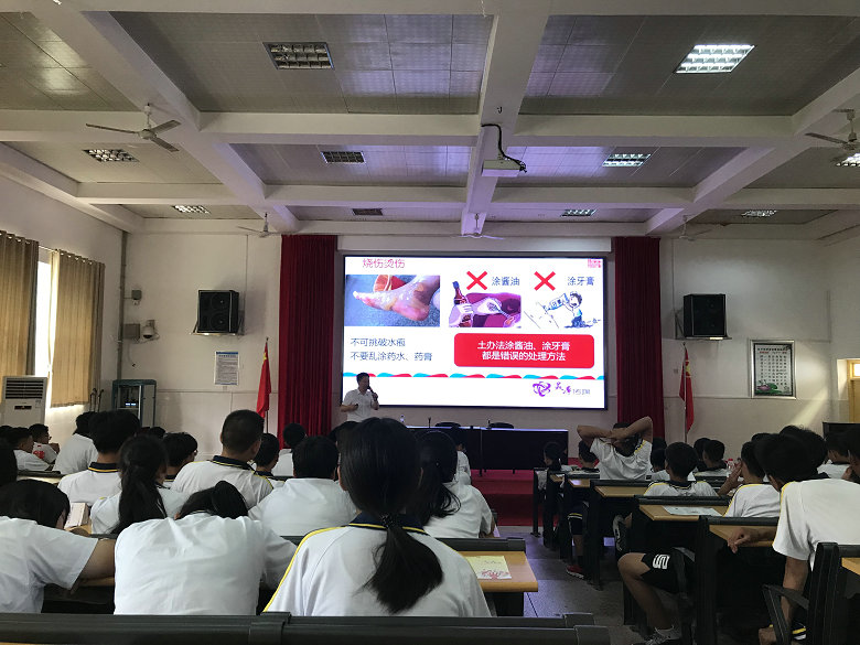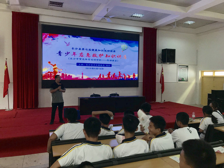 “爱生命、敬畏生命、珍惜生命”,9月16日下午,我校邀请长沙县卫生健康委专家,红十字生命健康安全教育国际急救认证师,中国红十字应急救护培训师,美国AHA救护持证人杨政主任为全体新生开展以防溺水,烧伤,煤气中毒,气管异物等应急救护知识的培训,200名师生集聚一堂仔细聆听了杨主任的精彩讲座。