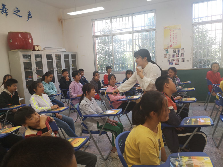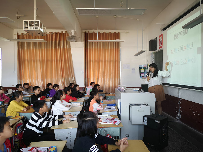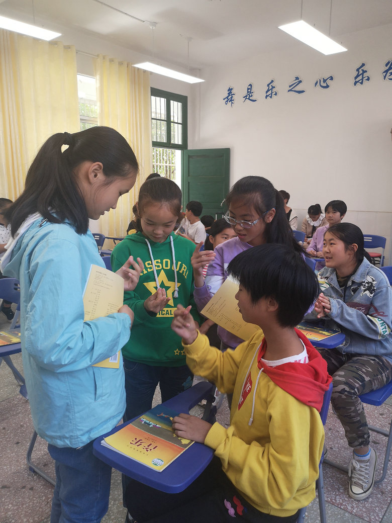 下午,志愿者们又辗转来到了龙田镇九年制学校,由音乐专业杨玉燕老师给孩子们送课,课上杨老师教学语言丰富生动,着力于学生积极性的调动,引导学生动脑、动口,师生配合默契,教学效果极佳,获得了全体师生的一致好评。
